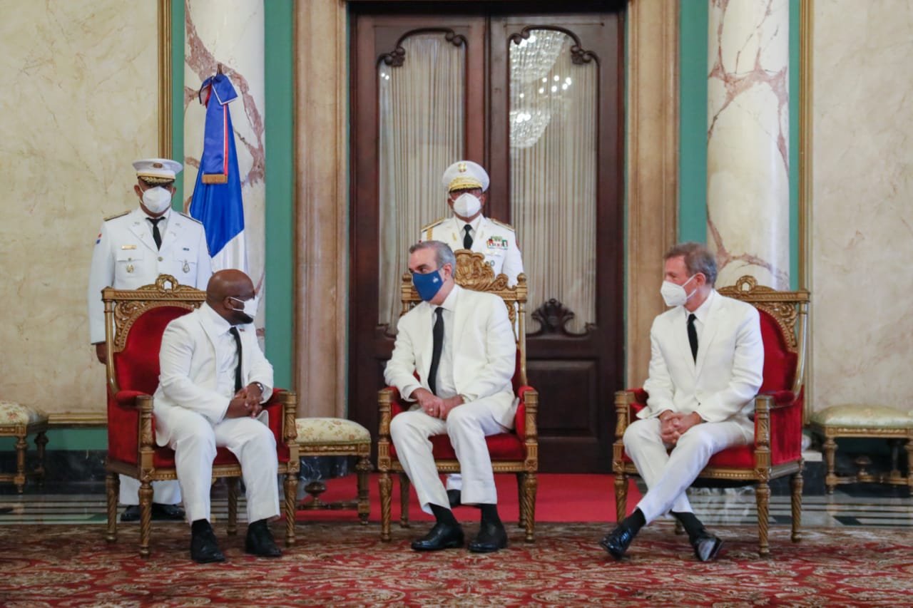 El presidente Luis Abinader recibió este jueves las cartas credenciales de los nuevos embajadores acreditados en el país Smith Augustin, de Haití; MouckbulAlí, Reino Unido e Irlanda del Norte y Eric Fournier, de la República de Francesa.
