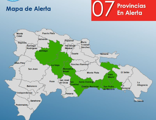 Las provincias en alerta son: Santiago, La Vega, Monseñor Nouel, San Cristóbal, Hato Mayor, San Pedro de Macorís y el Gran Santo Domingo.