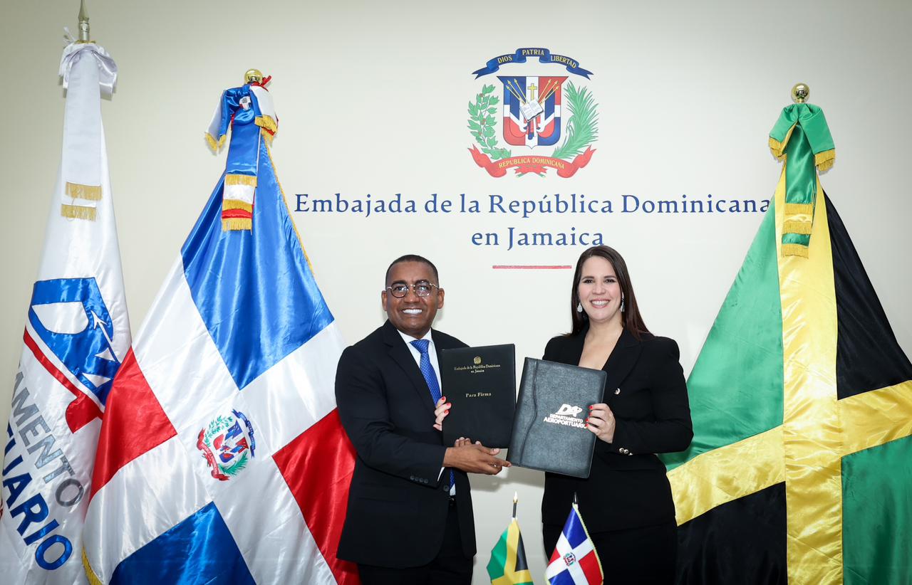 Kingston, Jamaica. El Departamento Aeroportuario (DA) y la Embajada de República Dominicana en Jamaica, firmaron un acuerdo de colaboración para la implementación del proyecto “Esfuerzo País, que busca promover el territorio dominicano en ese país insular, como un lugar seguro y amigable para la aviación privada no comercial.