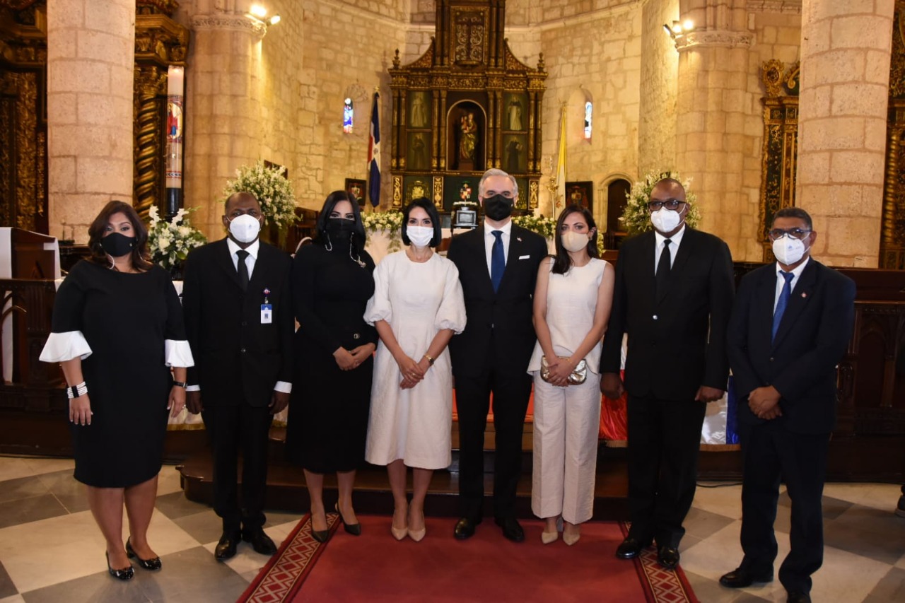 Durante la celebración eucarística se dieron cita diversos funcionarios y personalidades del sector laboral y empresarial, así como allegados a la institución, dentro de los cuales destacó la primera dama de la República, Raquel Arbaje De Abinader.