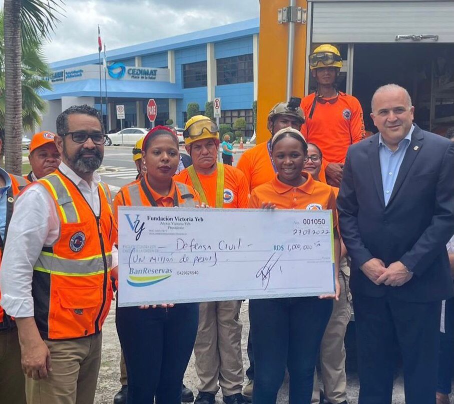 La Defensa Civil recibió este martes una donación de un millón de pesos por parte de la fundación que dirige el senador Alexis Victoria Yeb, los cuales serán destinados a fortalecer la capacidad de respuesta de la institución ante un momento de emergencia y/o desastre.