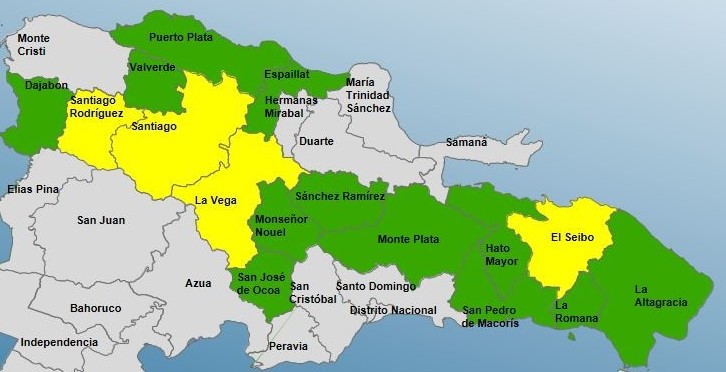 En alerta amarilla se encuentran Santiago, La Vega, El Seibo y Santiago Rodríguez, de acuerdo con la información.