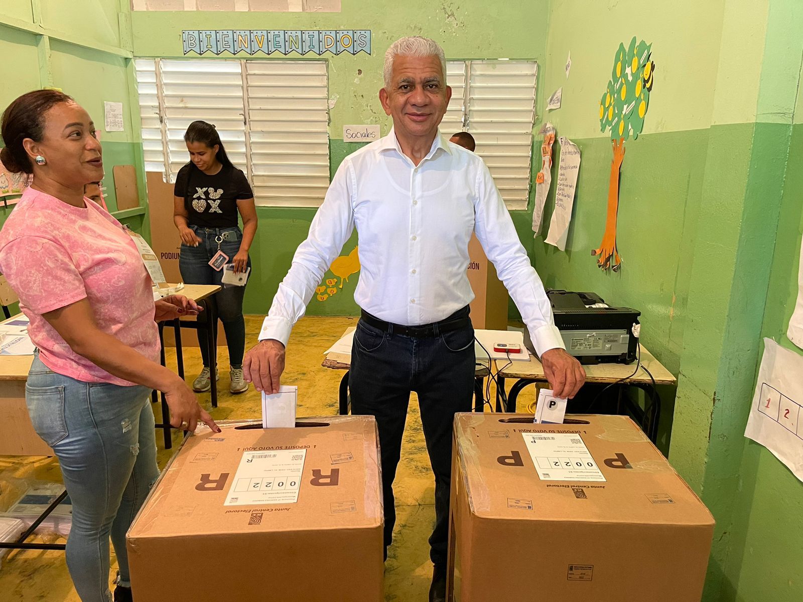 El presidente del Senado de la República y miembro de la Comisión Ejecutiva del Partido Revolucionario Moderno (PRM), Ricardo de los Santos, ejerció su derecho al voto a las 10:05 de la mañana, en la escuela primaria El Limpio del municipio Zambrana de la provincia Sánchez Ramírez.