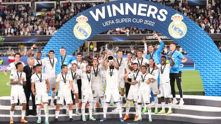 Los goles del austriaco David Alaba en el minuto 37 tras un córner y del francés Karim Benzema en el minuto 65 dieron el título de la Supercopa de Europa al Real Madrid tras vencer 2-0 al Eintracht de Fráncfort en Helsinki, la capital de Finlandia.