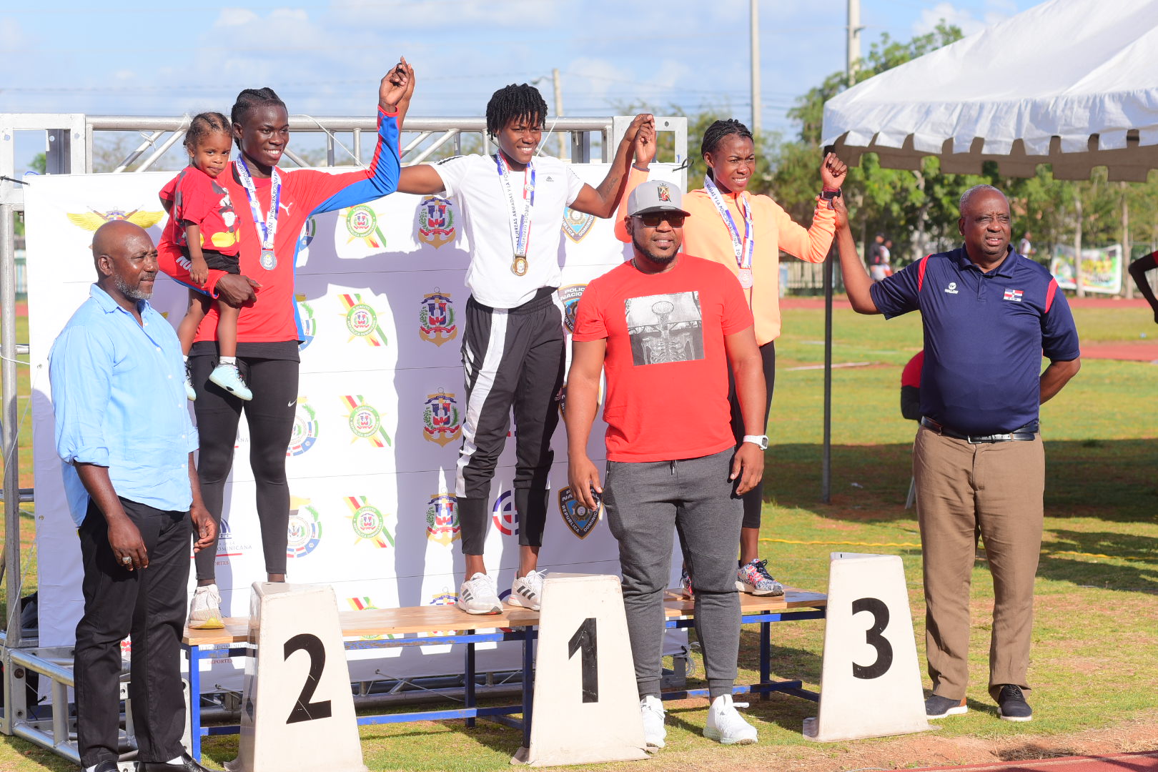 En masculino, José González, Yohandrys Andújar, Melvin Marcelino y Yancarlos Martínez combinaron un tiempo de 39.28 segundos, superando a la cuarte del Ejército (39.73), liderada por Christopher Valdez, Mayobanex De Óleo, Erick Sánchez y Jaime de la Rosa.