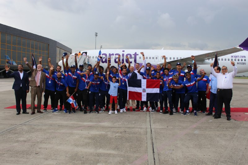 La Selección fue recibida por una comitiva oficial que estuvo presente en la rampa del AILA, donde los jugadores desembarcaron del nuevo y moderno avión Boeing 737 MAX 8 de Arajet a una alfombra roja llena de banderas dominicanas, que sirvió para rendirles un merecido e histórico homenaje por el gran logro alcanzado por estos jóvenes sub 20.