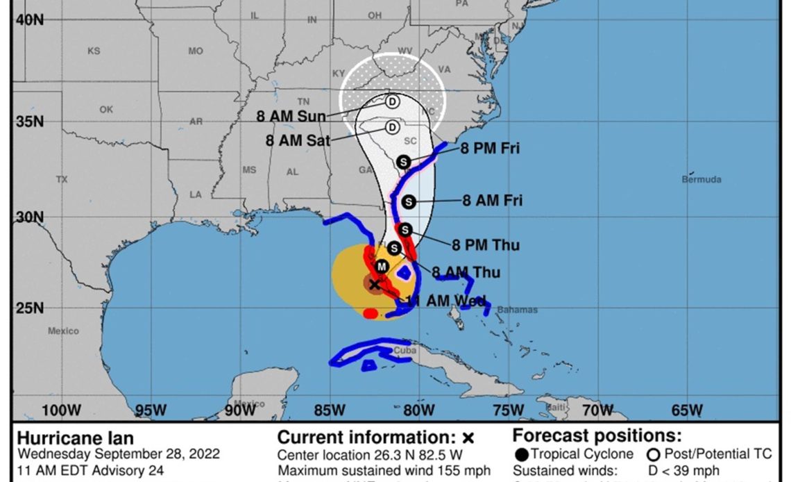 Ian, cuyos vientos corresponden a la categoría 4 de la escala Saffir-Simpson aunque rozando la 5, que es la máxima, ha sido descrito como un ciclón “increíblemente peligroso” por el NHC.
