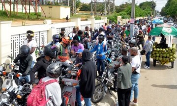 Miles de motoristas rodeaban ayer el Estadio Quisqueya para realizar el proceso en el último día.