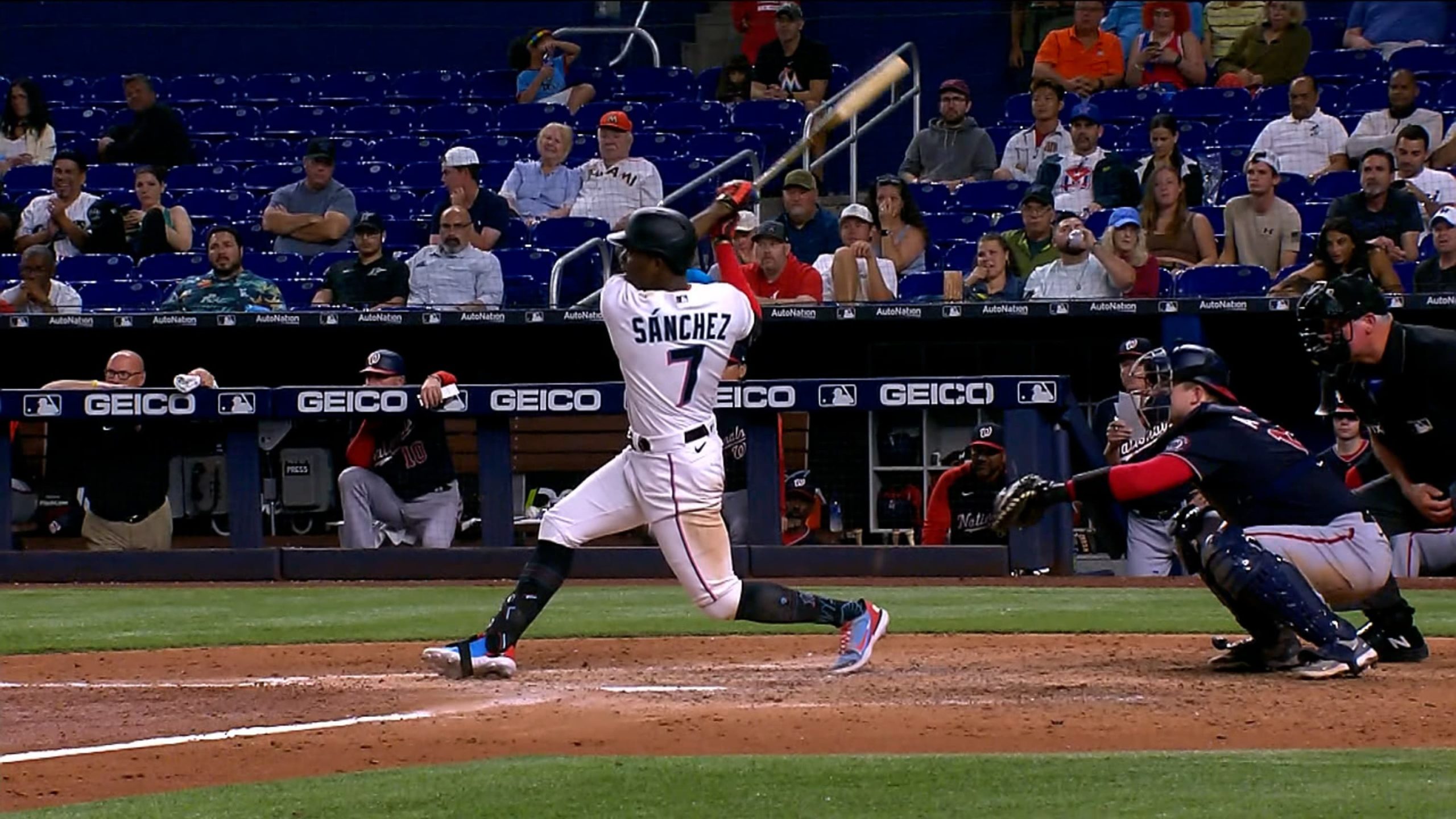 Jazz Chisholm bateó un sencillo mediante un toque de bola al primer lanzamiento de Stephen Strasburg, quien volvió tras una ausencia de un año, en el duelo que los Marlins de Miami ganaron el jueves 7-4 a los Nacionales de Washington.