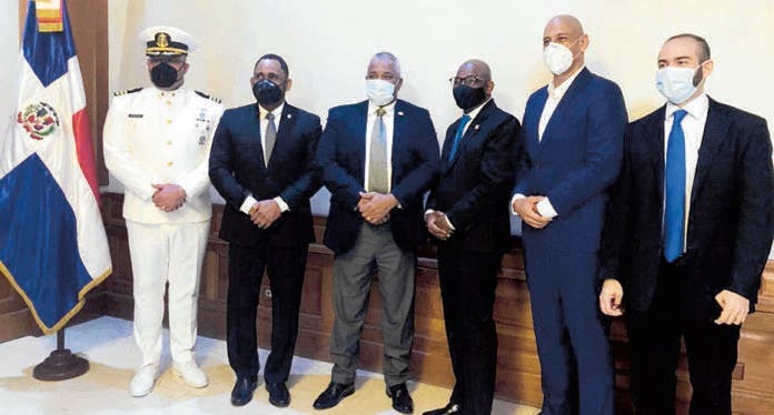 En el centro, el magistrado Marcos A. Cruz García, juez presidente del Tribunal Superior Electoral (TSE), a su derecha, el presidente de la Comisión Permanente de Derechos Humanos de la Cámara de Diputados, Juan Dionisio Restituyo Rodríguez, acompañados de otros panelistas e invitados al seminario.