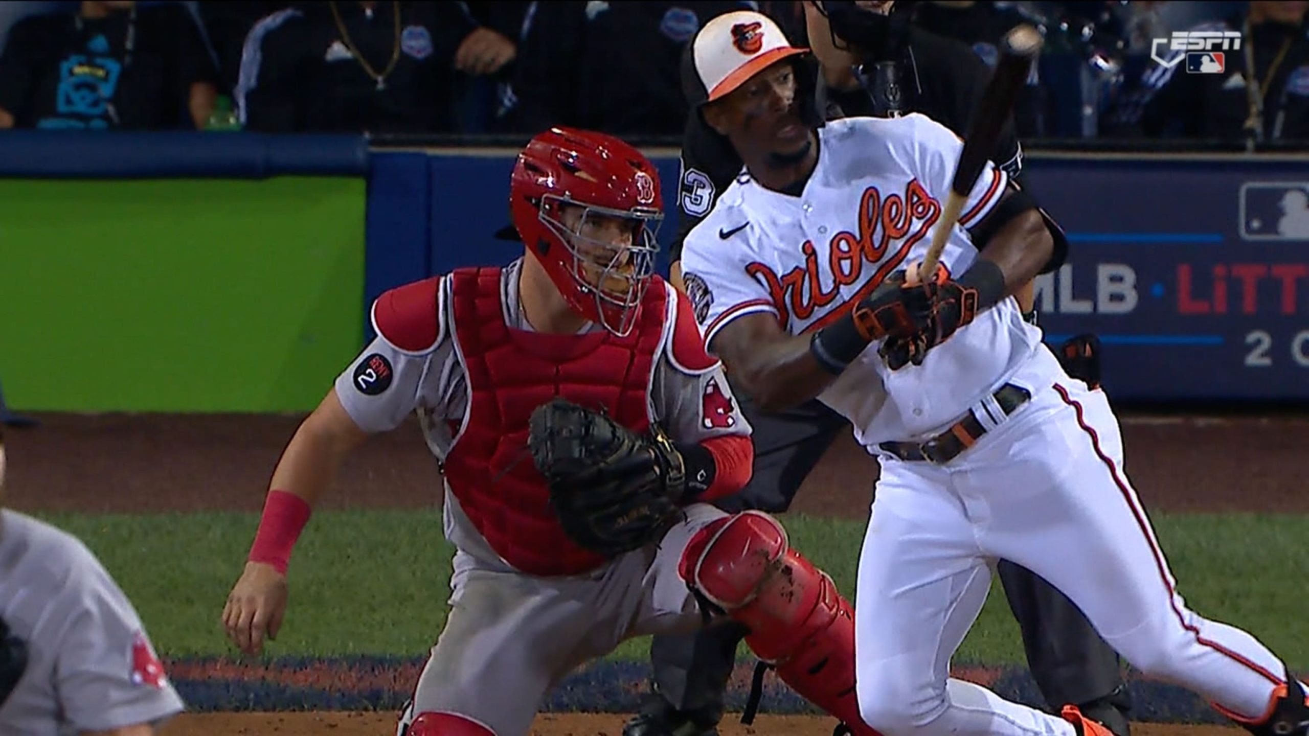 Jorge Mateo conectó una línea que terminó en doblete con las bases llenas al jardín izquierdo en la octava entrada, impulsando tres carreras y llevando a los Orioles de Baltimore a una victoria 5-3 sobre Medias Rojas de Boston el domingo por la noche frente a cientos de jugadores de la Serie Mundial de Ligas Pequeñas apoyando desde la tribuna.