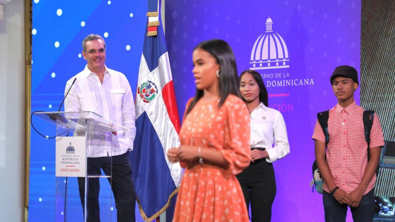 El presidente Abinader destacó que el aprendizaje del inglés como segundo idioma y la conversión de liceos en politécnicos, no solo desarrolla nuevas competencias en los estudiantes dominicanos, sino que es un aporte importante a los empleadores que tendrán personal disponible con la capacidad y competitividad que requiere la sociedad actual.