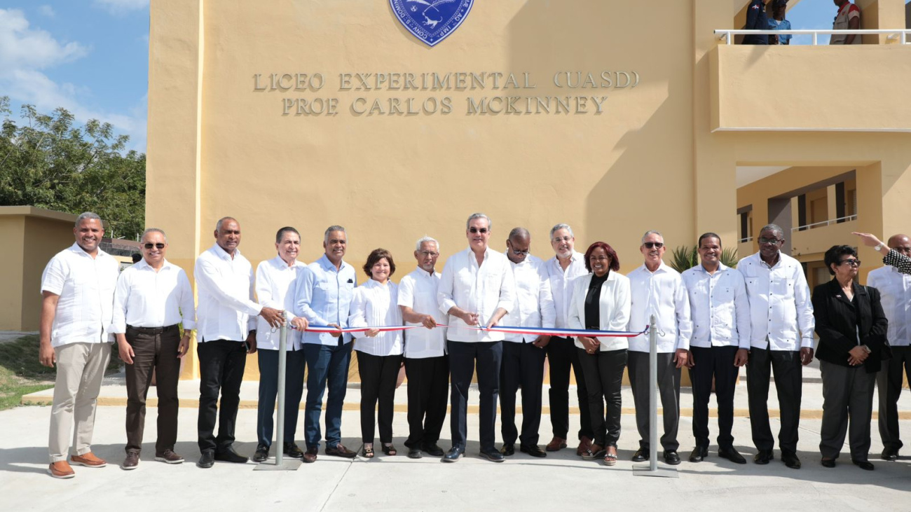 Baní, Peravia.- El presidente Luis Abinader, acompañado del ministro de Educación, Ángel Hernández, inauguró el Liceo Experimental Prof. Carlos McKinney de la Universidad Autónoma de Santo Domingo (UASD), en el sector Pueblo Nuevo del municipio Baní, de esta provincia.