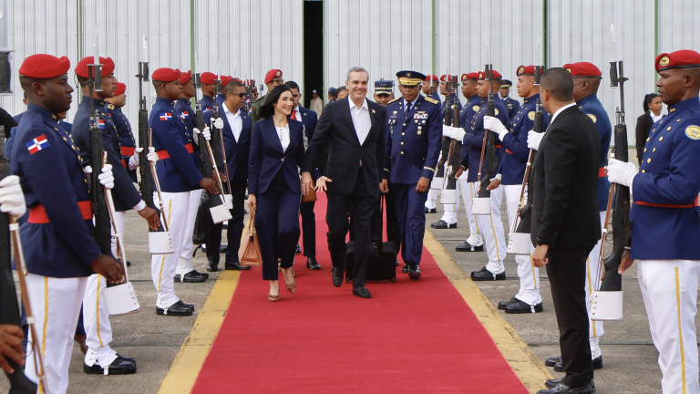 El mandatario, junto a la primera dama Raquel Arbaje, llegó al país a las 8:30 de la noche por el Aeropuerto Internacional de Las Américas José Francisco Peña Gómez (AILA).