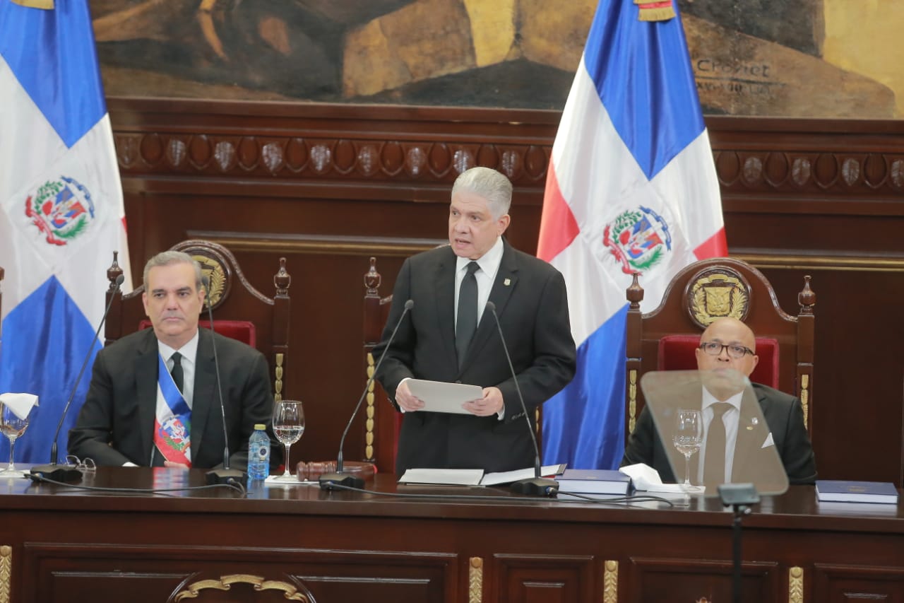 Santo Domingo. 27 de febrero de 2022.- El presidente del Senado de la República, Eduardo Estrella, llamó a la unidad nacional frente a los desafíos que acechan al país debido al conflicto entre Rusia y Ucrania, en su discurso ante la Asamblea Nacional para celebrar los actos de rendición de cuentas del presidente Luis Abinader.
