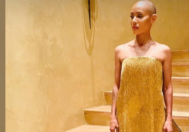 Jada Pinkett Smith, lució un vestido dorado durante su primera aparición pública después de que su esposo el actor Will Smith le diera una bofetada al comediante Chris Rock en la edición número 94 de los Premios Oscar.