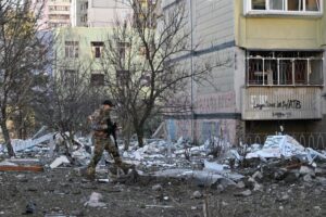 Poco después, funcionarios ucranianos dijeron que los proyectiles rusos alcanzaron casas, tiendas, bibliotecas y otros sitios civiles en Chernígov y en las afueras de Kiev.