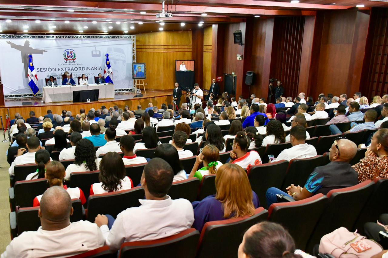 La sesión estuvo presidida por el licenciado. Ricardo de los Santos; la vicepresidenta Faride Raful; y los secretarios de Bufete Directivo, Melania Salvador y Milcíades Franjul; además participaron los senadores, Ginette Bournigal de Jiménez, Lía Díaz, David Sosa, Franklin Romero, Aris Yván Lorenzo, el doctor Cristóbal Castillo, el Licey .