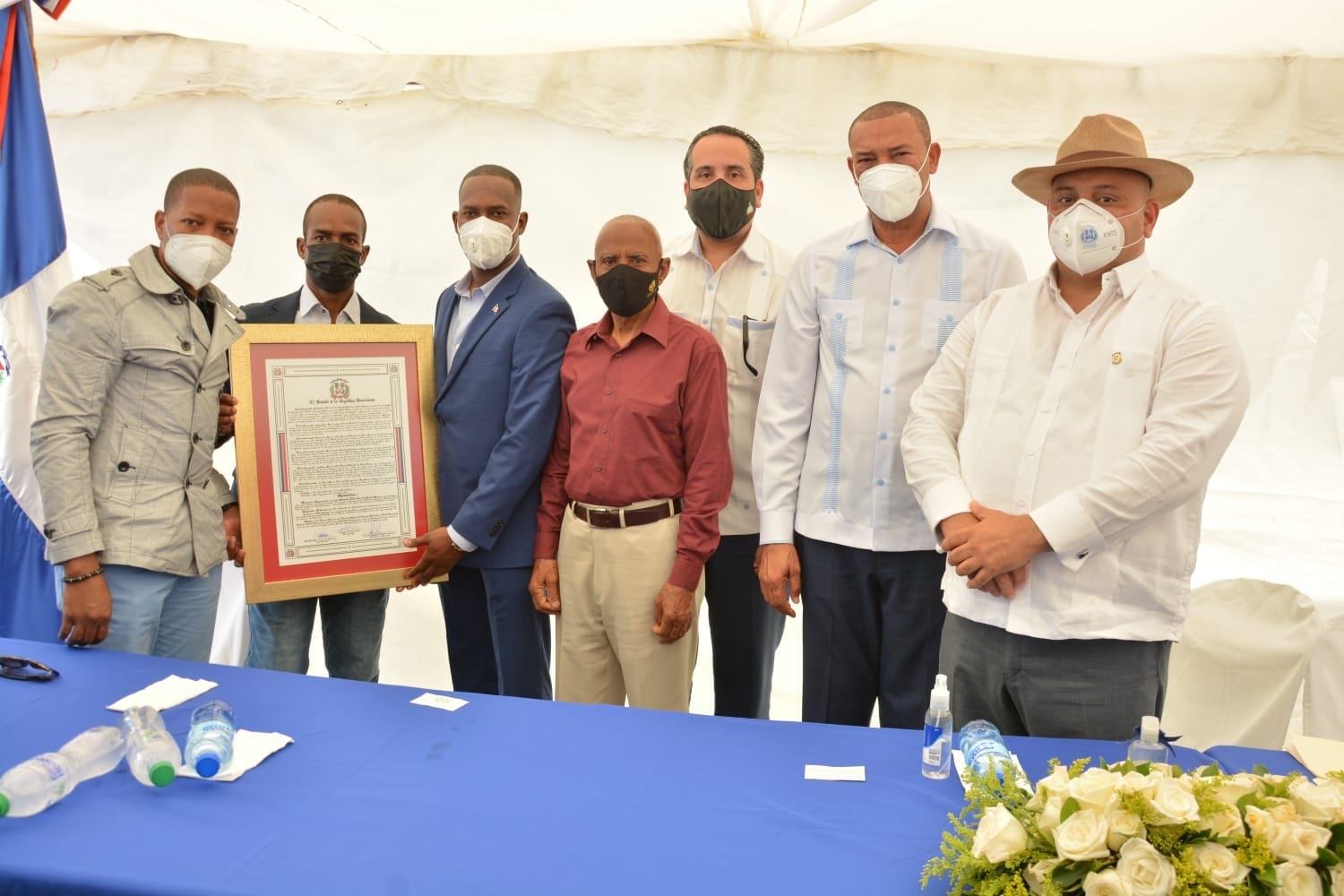 Posteriormente, los senadores Santiago José Zorrilla (El Seibo) y Lenin Valdez (Monte Plata) entregaron el pergamino contentivo de la resolución a Ramón Ferrer, quien tomó la palabra para agradecer el reconocimiento, previo a lo cual la joven deportista Vanessa Ozuna Reyes, del Club Deportivo y Social El Cacique, habló en nombre de la comunidad.