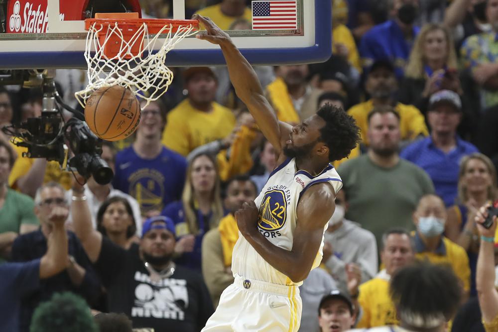 Wiggins tuvo 26 puntos y 13 rebotes, Klay Thompson anotó 21 puntos y los Golden State Warriors vencieron el lunes 104-94 a los Boston Celtics para tomar una ventaja de 3-2 en las Finales de la NBA.